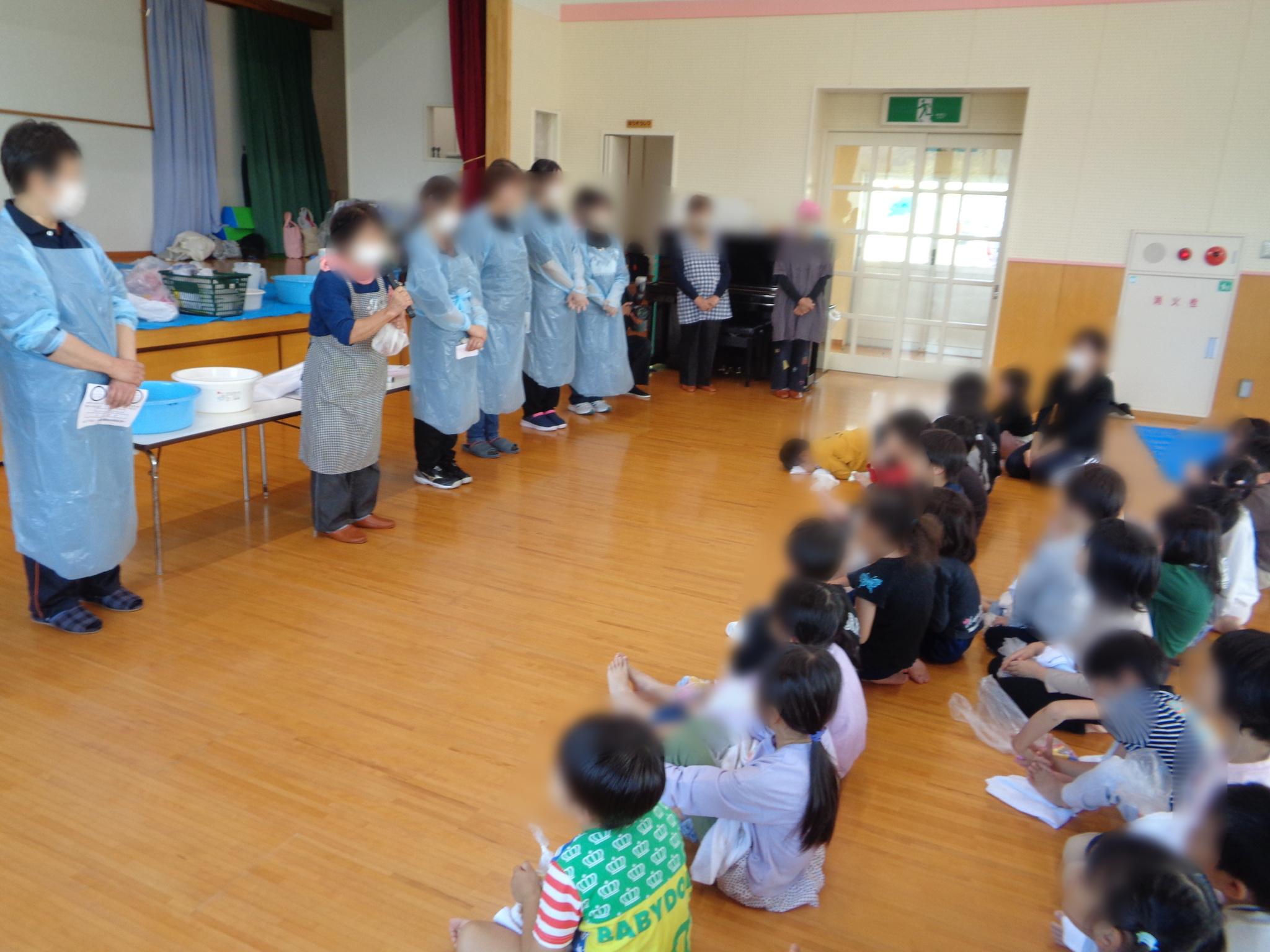 一覧へ戻る年長児 紅花染め体験2025-10-20年長児 紅花染め体験今年の夏、紅花を育てた年長児。10月20日(月)紅花染め体験を行いました。講師の先生方とお手伝いの保護者の方と一緒に楽しく紅花染めスタートです!真っ白なハンカチを重ね折りし10個の洗濯ばさみで何か所も挟みます。洗濯ばさみで挟んだところは色が付かず模様になります♪プラスチック手袋をつけて、紅花染めの準備万端!紅花で作った「紅餅」を水の中に入れ、コーラのような色になるまで15分間揉み続けました。コーラ色になりました!みんな頑張りました。次は、クエン酸を入れて混ぜます。すると、きれいな赤色に変わりびっくりする子どもたち。真っ白なハンカチを入れると、赤色が白のハンカチに染みわたっていき鮮やかな紅色に染まりました。紅花で染めたハンカチ、洗濯ばさみの模様は世界で一つだけ自分だけの作品です。とても貴重な体験をすることができました。